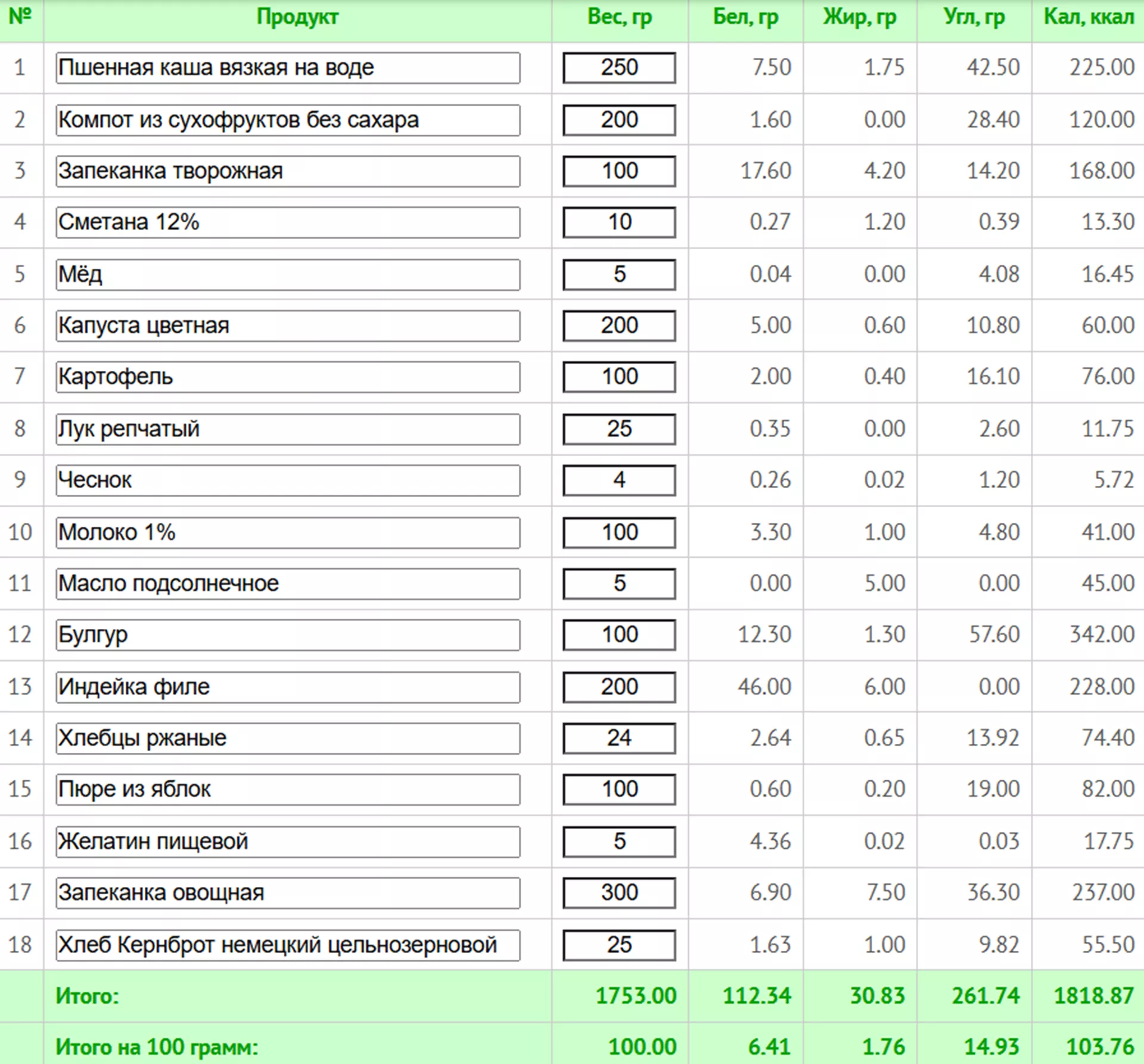 Диета стол № 5: меню на неделю с рецептами, расчетом КБЖУ и списком покупок