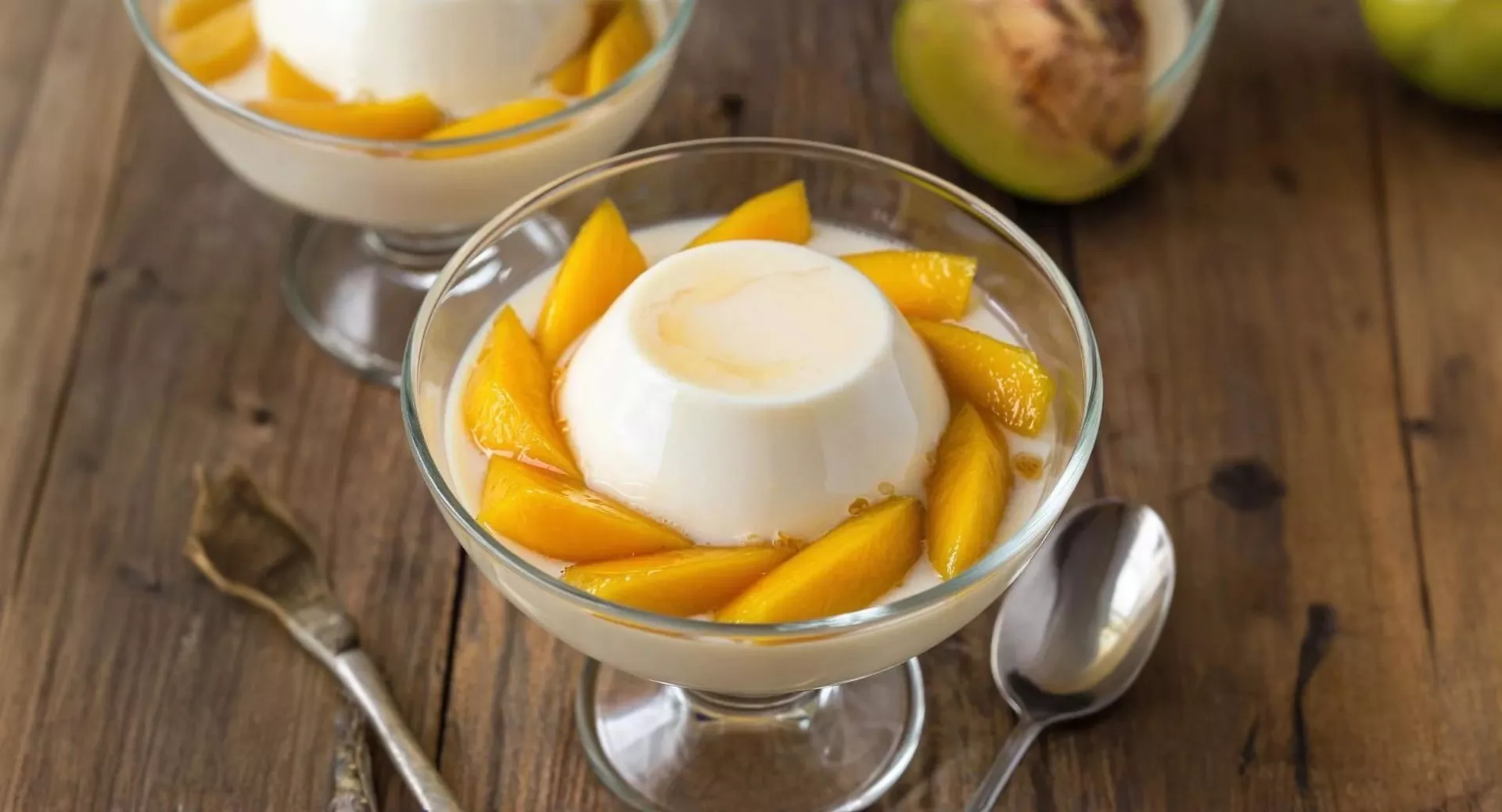 Низкокалорийный десерт, который даже можно заморозить в холодильнике в качестве заготовки. Манго используют свежий или замоченный на ночь в воде сухофрукт. Поскольку плод сладкий, в десерт не нужно добавлять много сахара.