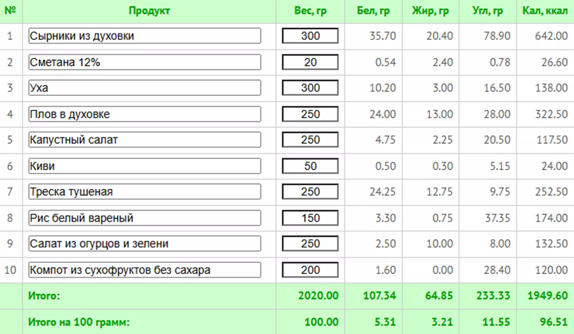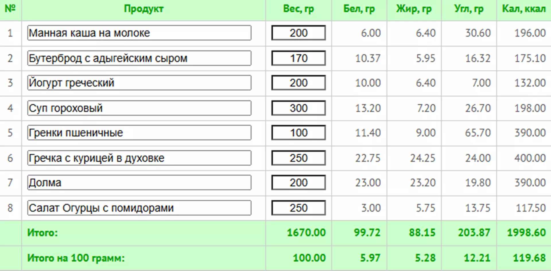 Но помните, что это приблизительные цифры. Для более точных расчетов лучше обратиться к таблице КБЖУ различных продуктов.