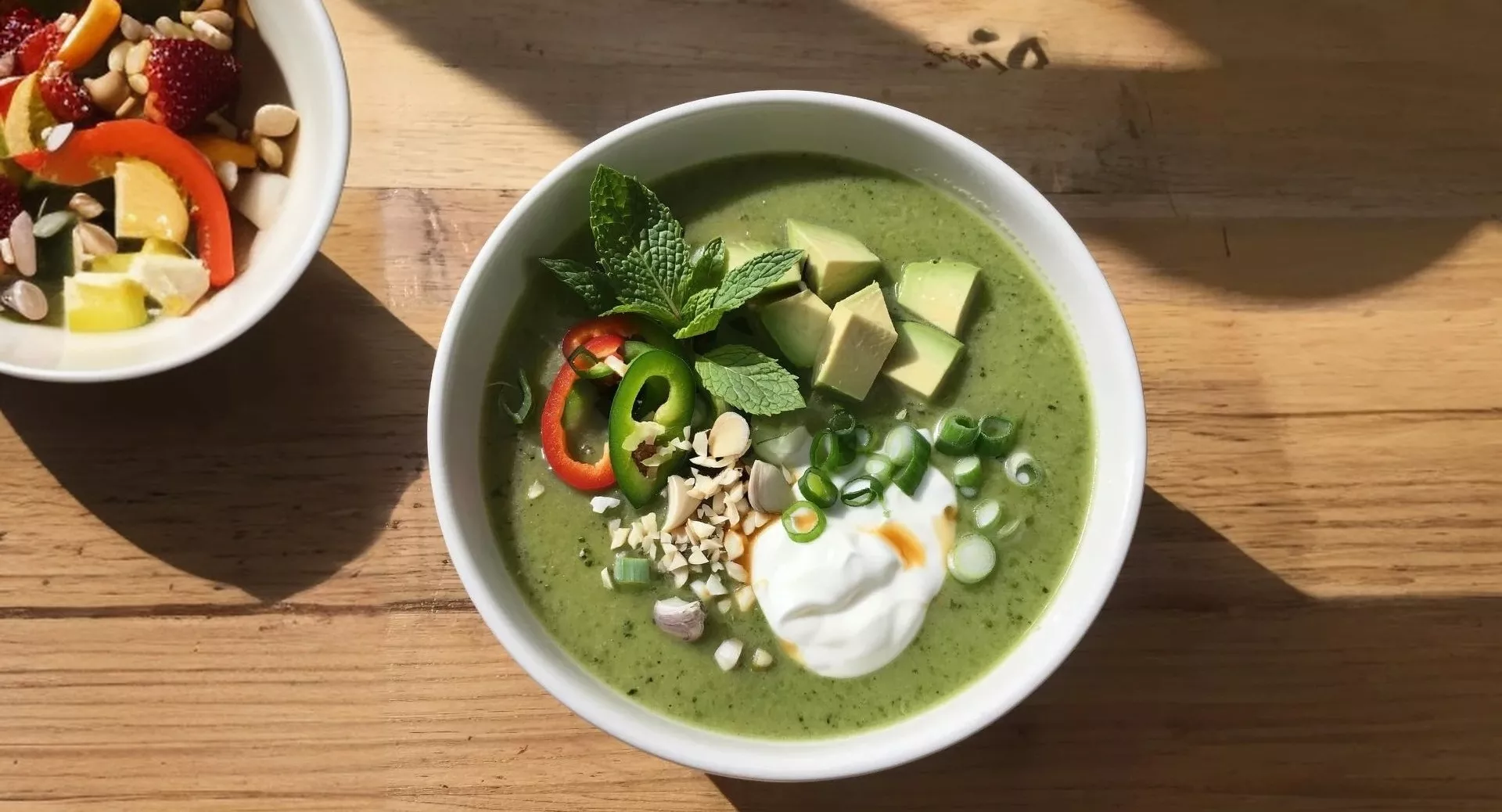 - Легкие холодные супы (окрошка на кефире, гаспачо).