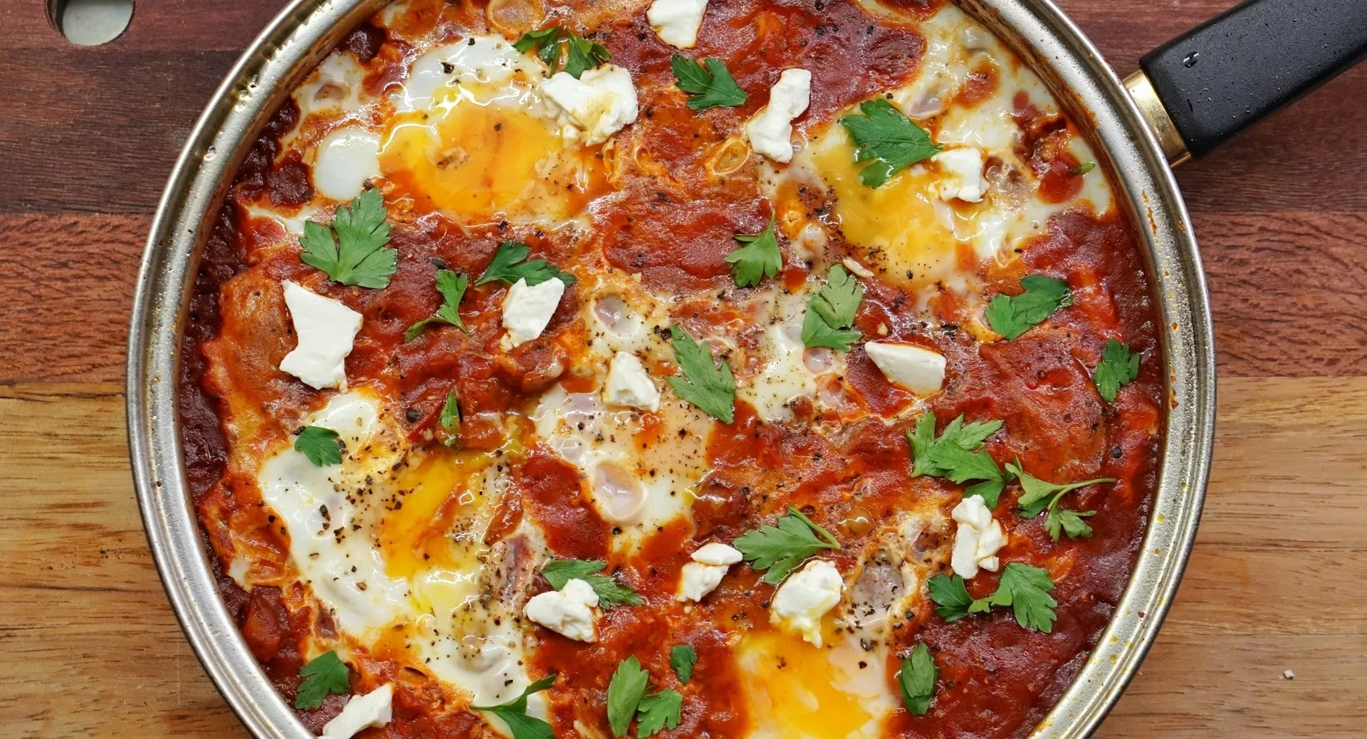 Знаменитая израильская яичница, только без соуса и хлеба — идеально для ПП.