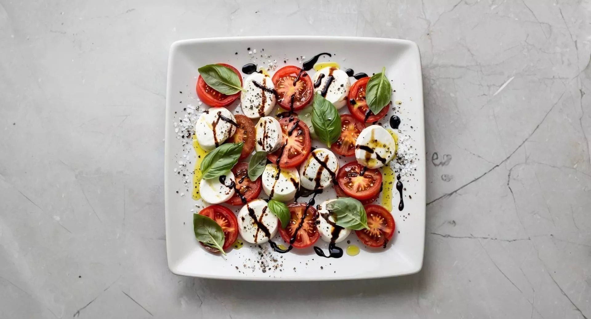 Инструкция. Чередуйте ломтики помидоров и моцареллы на тарелке. Добавьте листья базилика. Полейте оливковым маслом и бальзамическим соусом, приправьте солью и перцем.