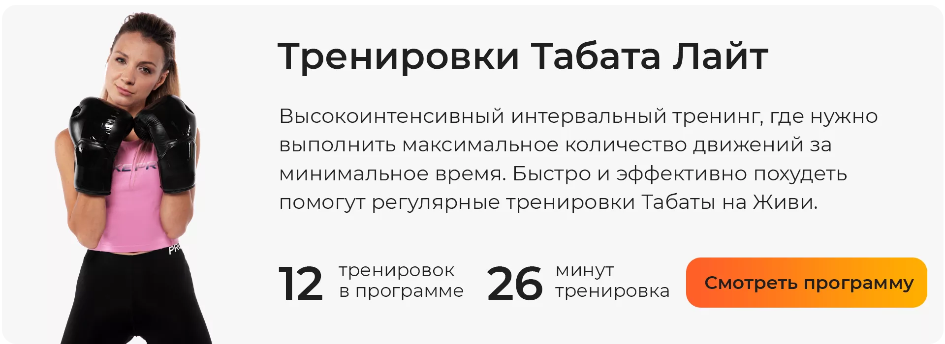 Хотите больше интересных упражнений? Оформите подписку на «Живи!» и получите полный доступ к фитнес-тренировкам от тренеров международного класса! Попробуйте высокоинтенсивный интервальный тренинг «Табата-лайт» с Екатериной Демидовой! А если хотите сделать максимальное количество упражнений за минимальное время, подключайтесь к программе «Табата-хард».